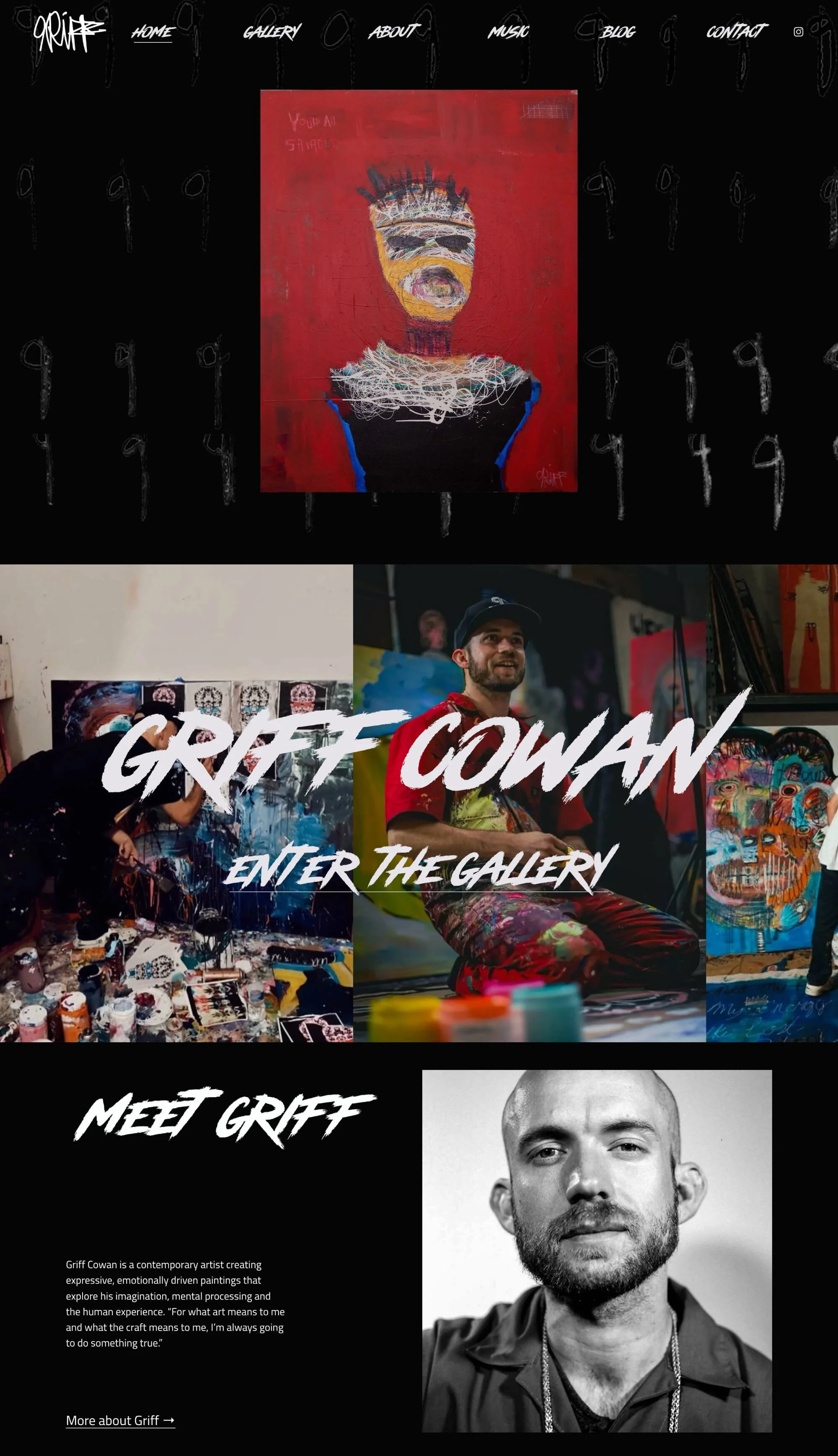Griff is a multi-talented painter and musician, also my younger brother. We created a digital realm that invites people into Griff’s world and process, while also embracing gallery minimalism to appeal to art world professionals.