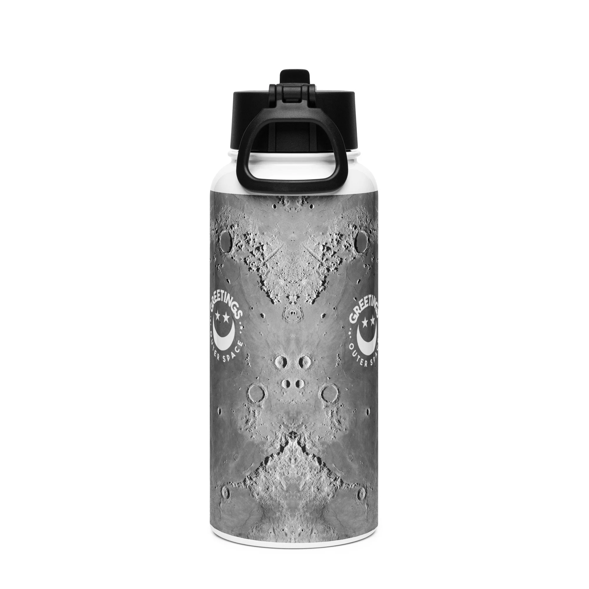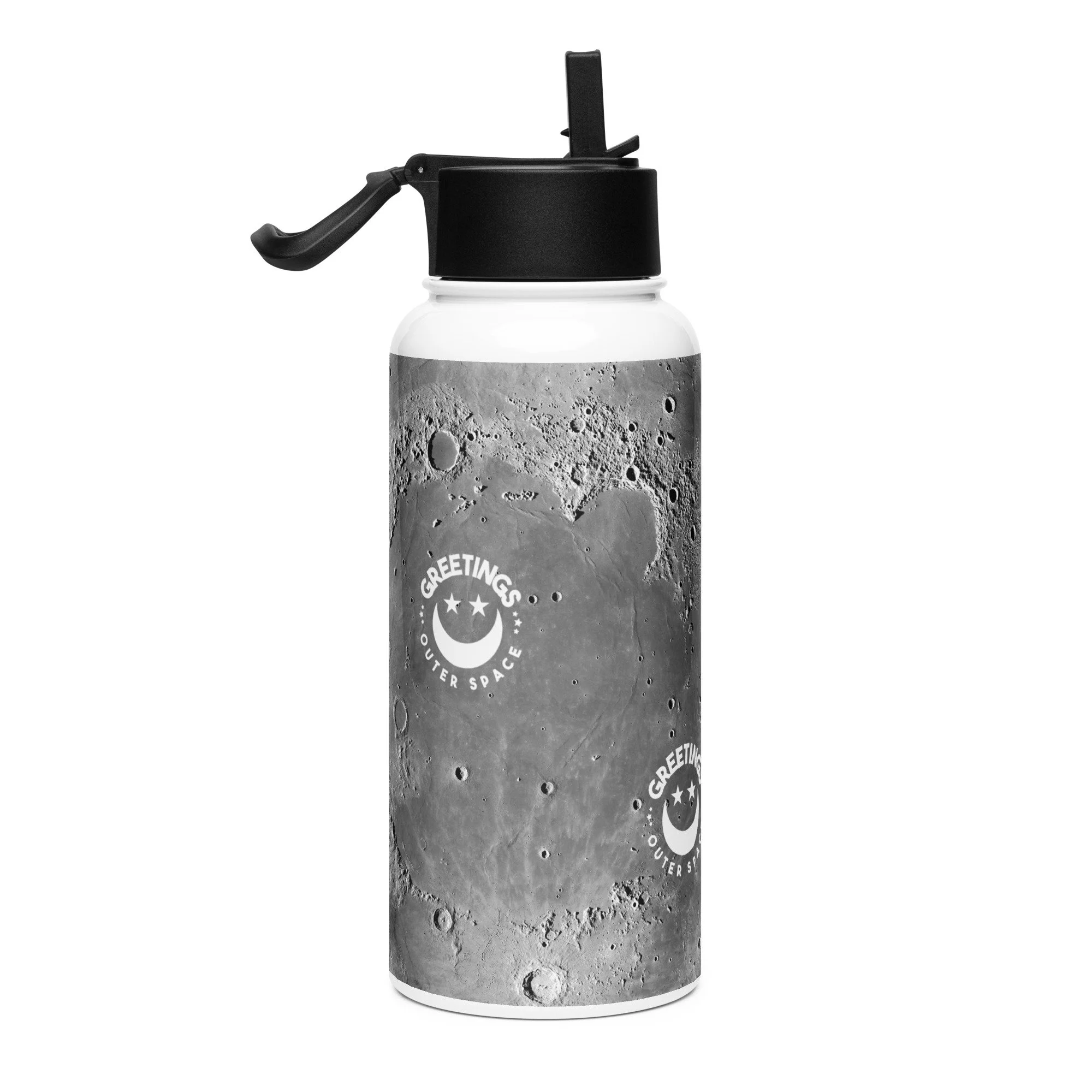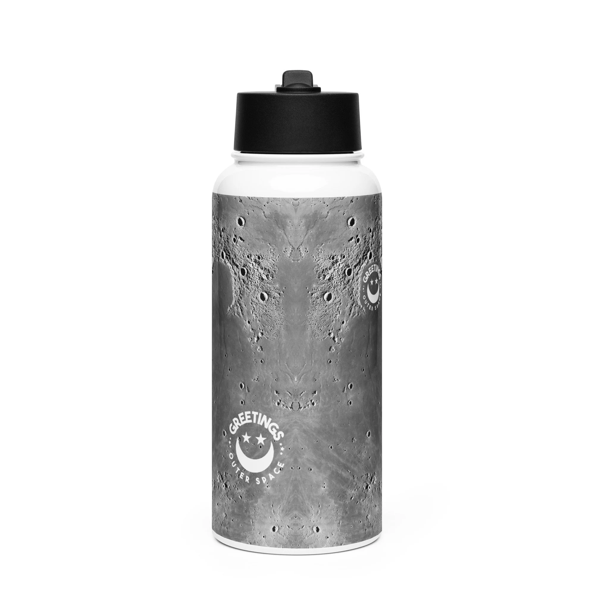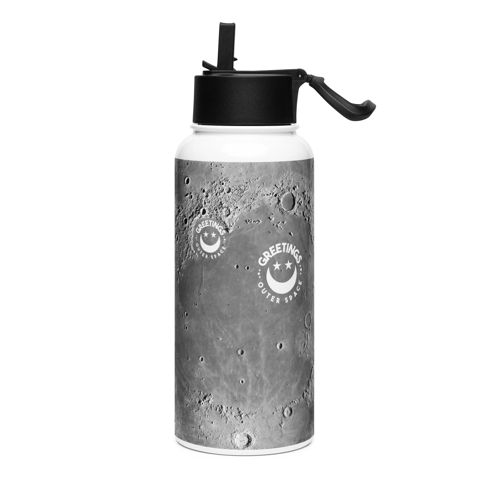 Moon Print Stainless Steel Water Bottle with a straw lid